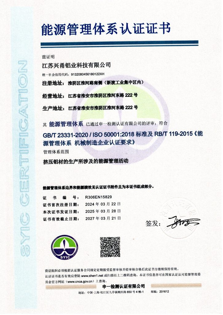 兴甬铝业的生产与管理体系已获得国际权威机构在质量、安全、环境及能效方面的多项认证。所有审核与合规报告均满足欧盟及北美市场的采购要求,为全球合作伙伴提供可靠保障。